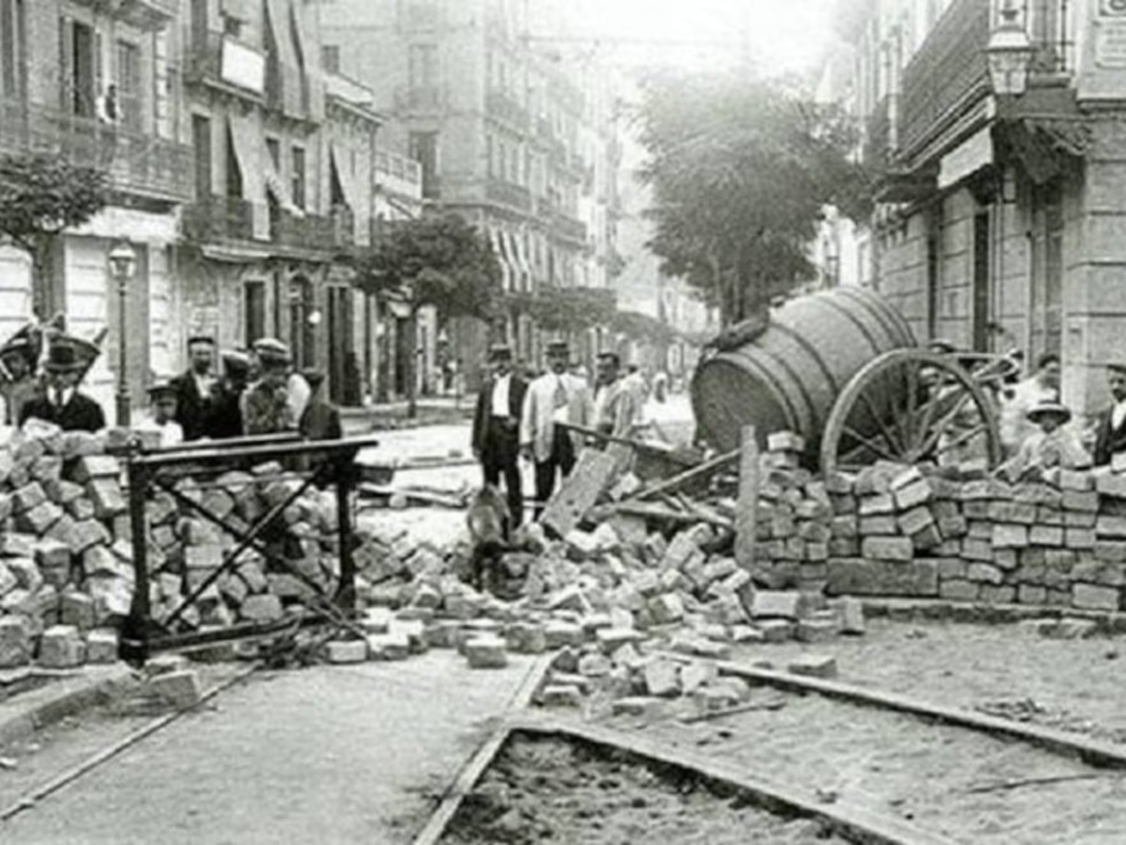 Del 7 al 14 de enero de 1919, en Buenos Aires, se desataron graves incidentes entre manifestantes obreros anarquistas y grupos de choque que respondían a las patronales enfrentadas además con el Gobierno de Yrigoyen. Así se construyó «La Semana Trágica»